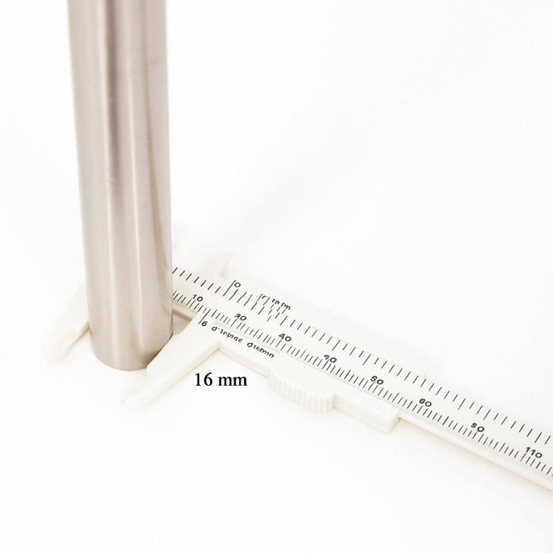 Muovinen työntömitta tuolin- ja huonekalunjaloille. Valkoista muovia, mittaa jopa 80 mm asti.